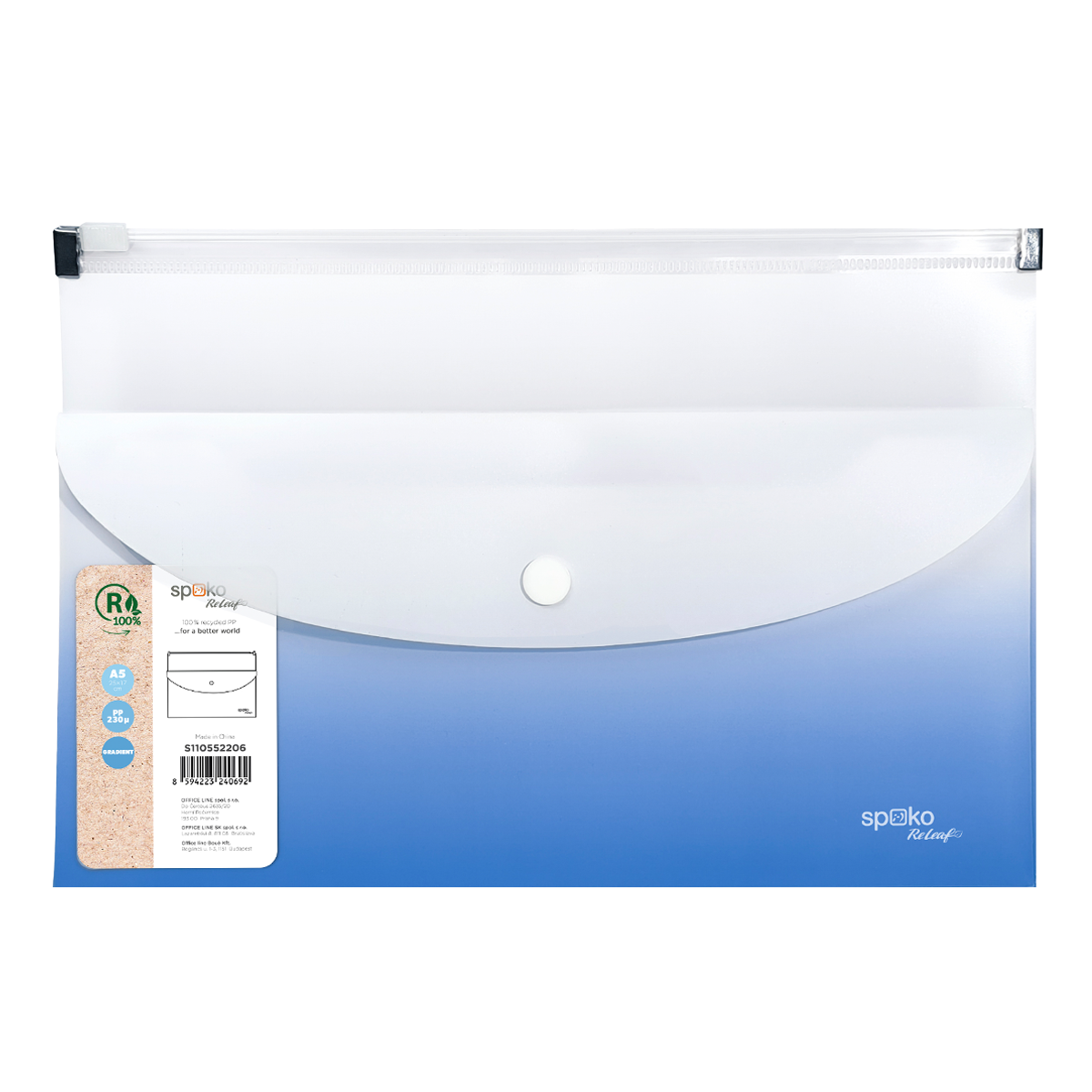 Uspořádejte si dokumenty s ekologickou kolekcí Spoko ReLeaf Gradient, která dodá vaší kanceláři svěží vítr a barevný nádech originality! Moderní vzhled a kombinovaný přechod barev, působí dynamicky, elegantně a sofistikovaně. Vyrobena z recyklovaného a odolného PP a dostupná ve třech krásných odstínech.