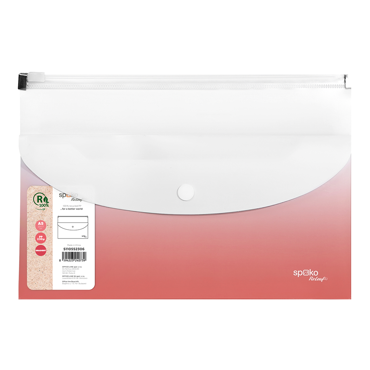 Uspořádejte si dokumenty s ekologickou kolekcí Spoko ReLeaf Gradient, která dodá vaší kanceláři svěží vítr a barevný nádech originality! Moderní vzhled a kombinovaný přechod barev, působí dynamicky, elegantně a sofistikovaně. Vyrobena z recyklovaného a odolného PP a dostupná ve třech krásných odstínech.