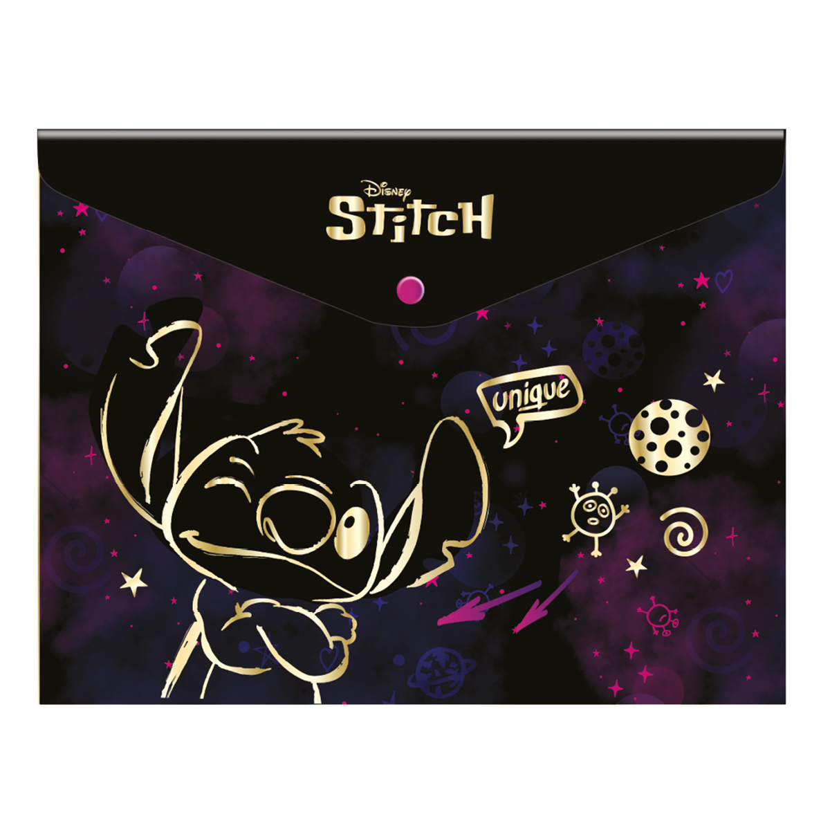 Seznam se s kolekcí Stitch Gold. Je třpytivá, stylová a rozhodně není nudná. Zlatý motiv Stitche s drobnými detaily z tebe udělá hvězdu školní lavice. Buď kreativní a slaď si svoje vybavení podle vlastní fantazie.