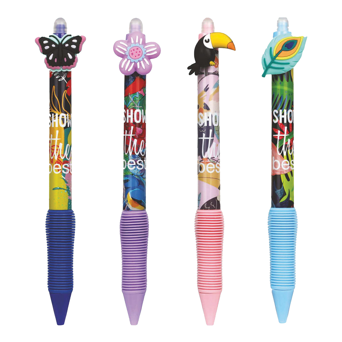 Kolekce gumovatelných per s barevným tělem a roztomilými motivy zologických zvířátek. Příjemný pogumovaný grip zajistí pohodlný úchop každému školákovi.
