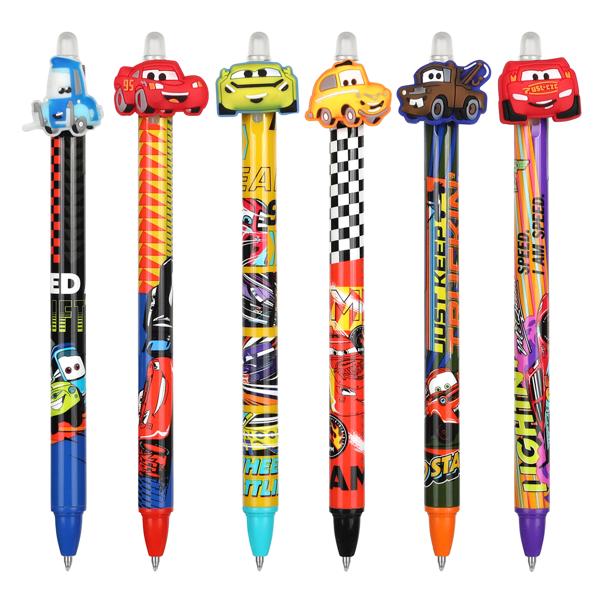 Praktická gumovatelná pera pro děti s měkkou koncovkou a motivy postaviček - aut z oblíbeného filmu. Kvalitní inkoust lze v případě potřeby jednoduše vygumovat a přepsat.