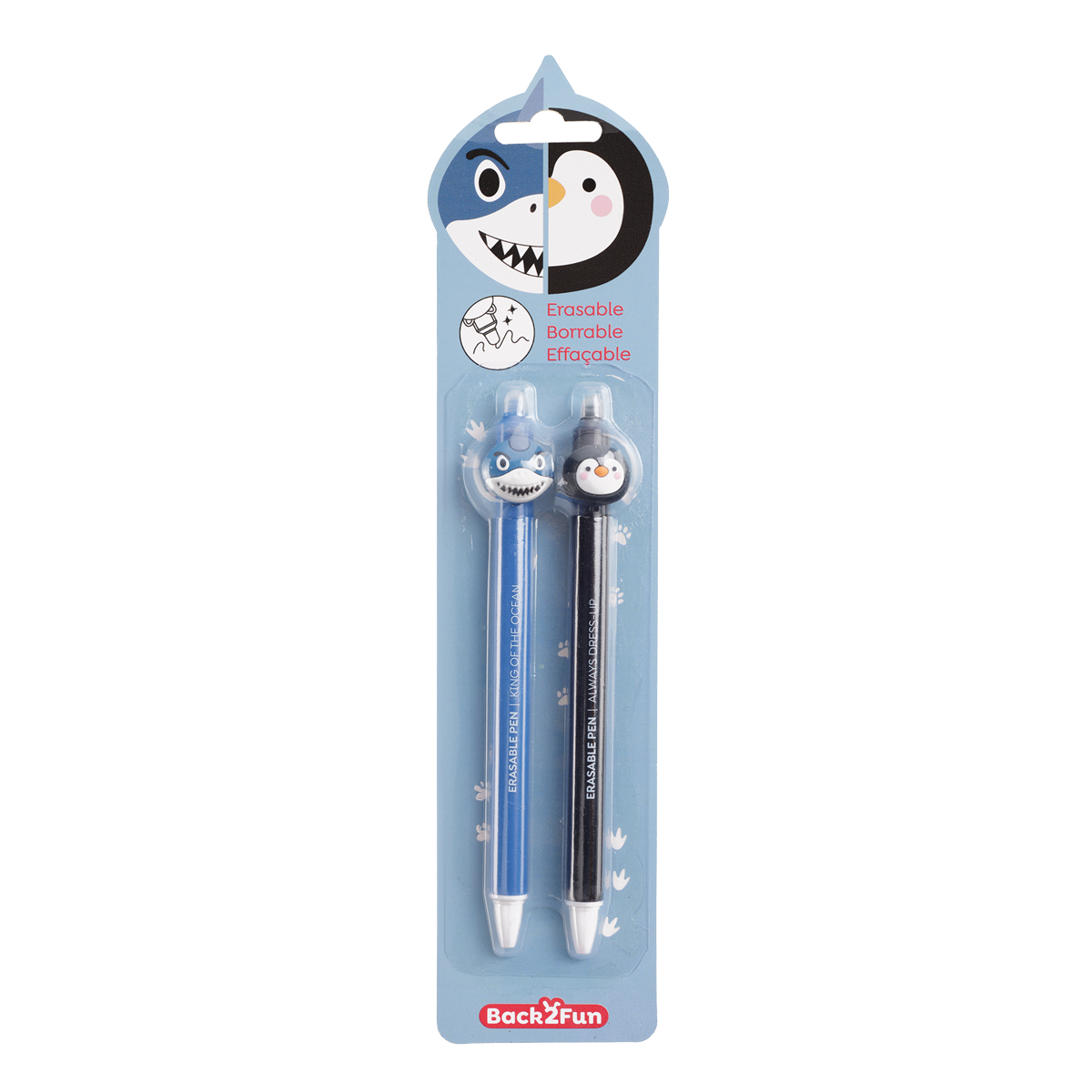 Veselá gumovatelná pera s motivem zvířátek. Roztomilá stiskací mechanika sladěná s barvou těla. Měkká koncovka s pryží pro snadné odstranění chyb. Barva náplně - modrá.