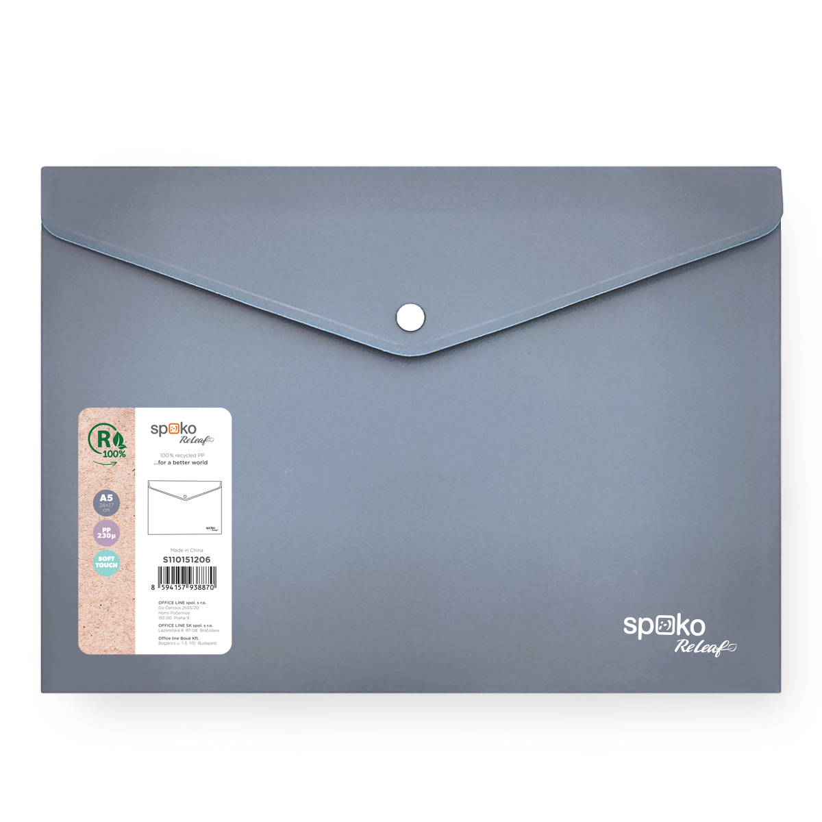 Spoko ReLeaf je ekologická řada produktů značky Spoko, která přistupuje zodpovědně k životnímu prostředí a při výrobě svých produktů využívá převážně recyklované materiály. Řada archivačních doplňků SoftTouch je vyrobena ze 100% recyklovaného PP. Díky tomu má i nezávislou certifikaci Global Recycled Standard.