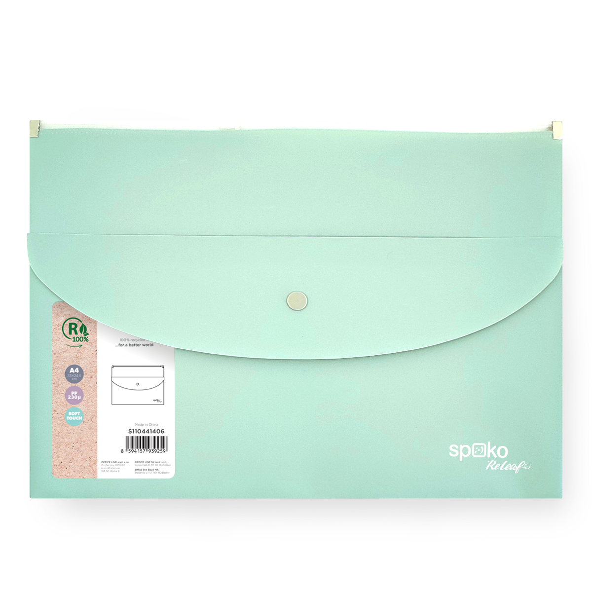 Spoko ReLeaf je ekologická řada produktů značky Spoko, která přistupuje zodpovědně k životnímu prostředí a při výrobě svých produktů využívá převážně recyklované materiály. Řada archivačních doplňků SoftTouch je vyrobena ze 100% recyklovaného PP. Díky tomu má i nezávislou certifikaci Global Recycled Standard.