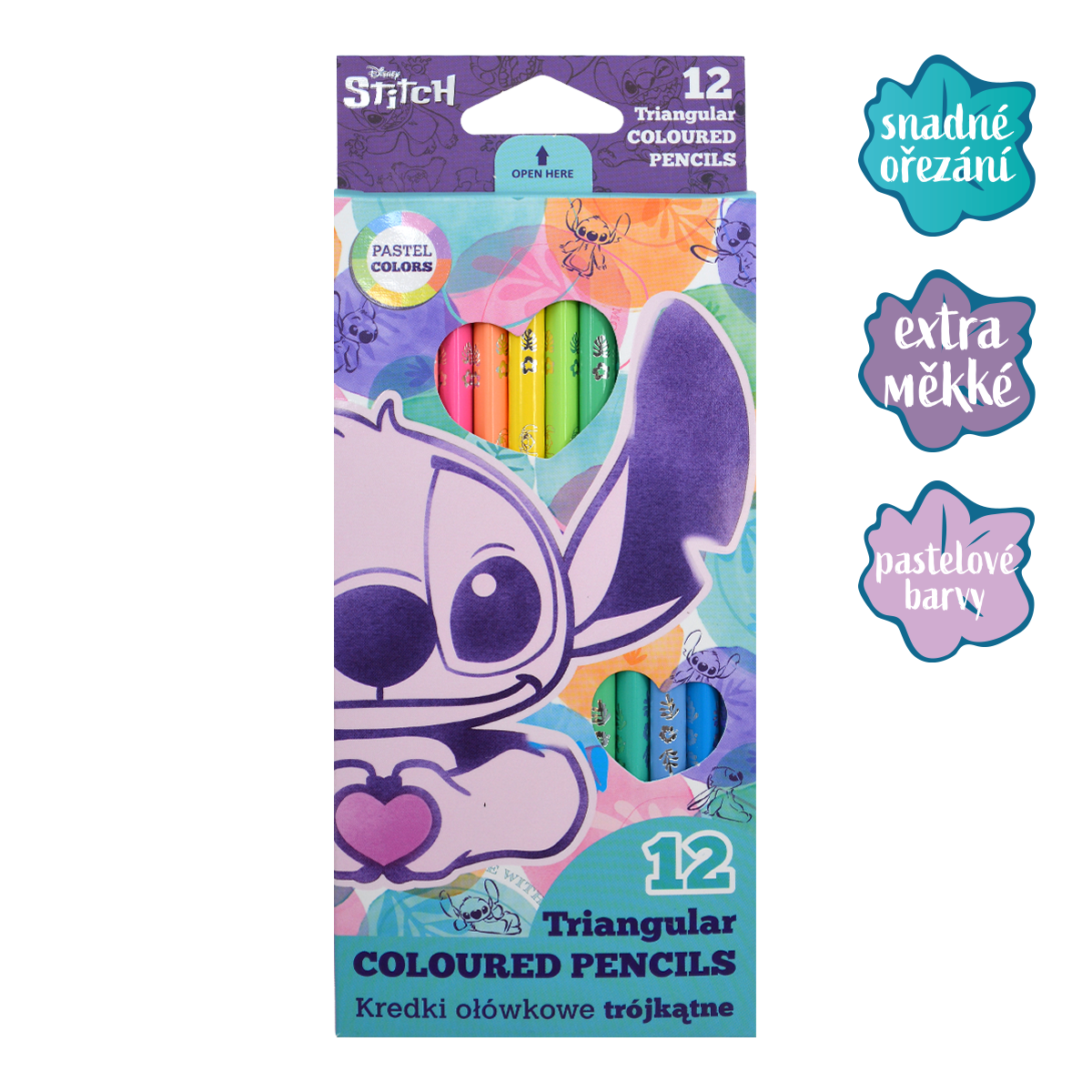 Trojhranné pastelky v pastelových barvách, s vysokým obsahem pigmentu pro krásné a syté barvy. Ergonomický tvar pastelky umožňuje snadné držení a lehké malování. Tuha lepená po celé délce zamezuje jejímu polámaní během pádu pastelky.