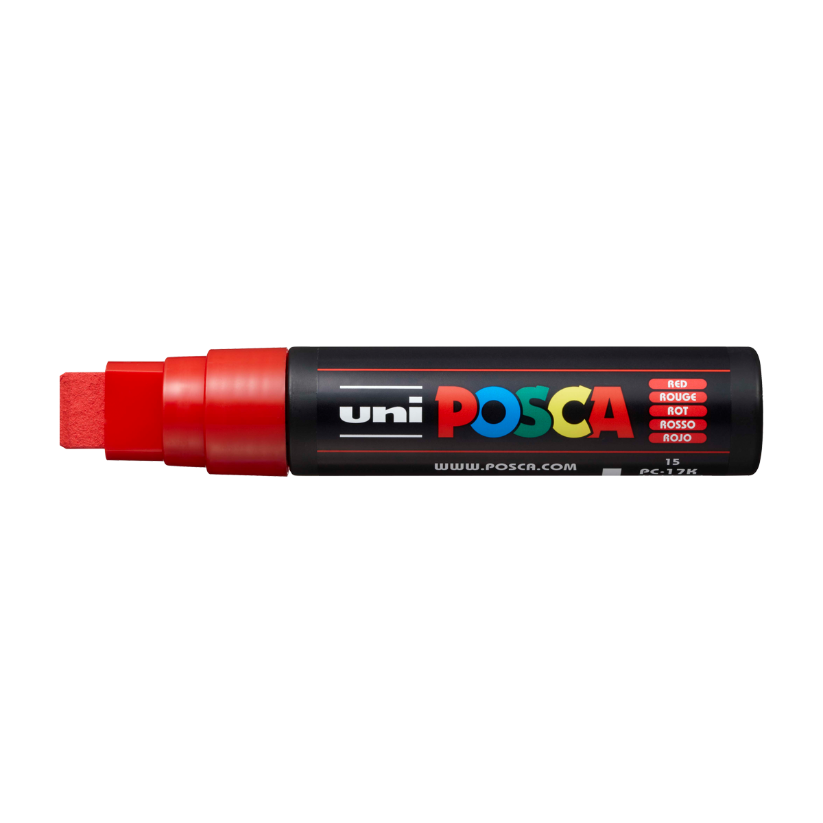 popisovač Uni Posca PC-17K akrylový - široký rovný hrot 15 mm červený