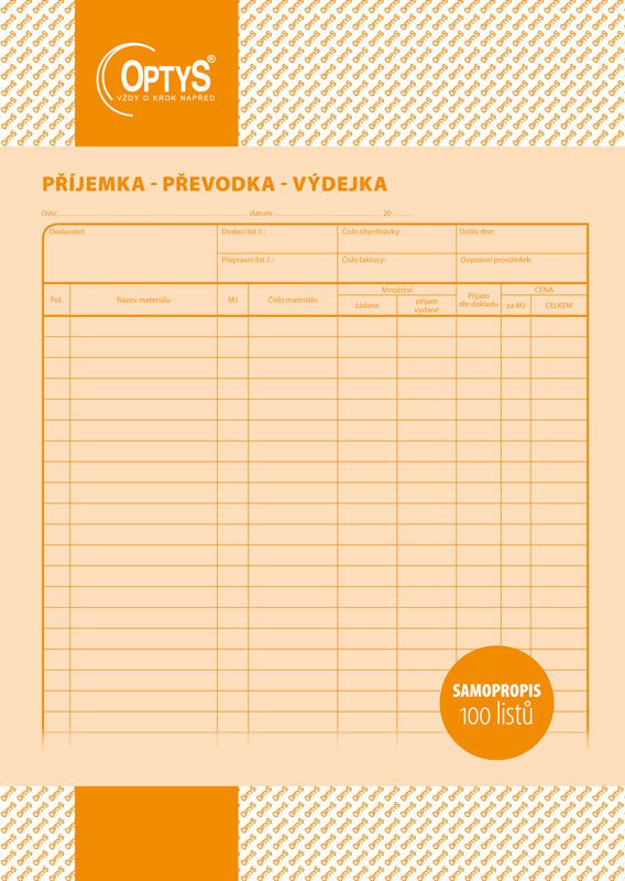 příjemka, převodka, výdejka A4 samopropisovací Optys
