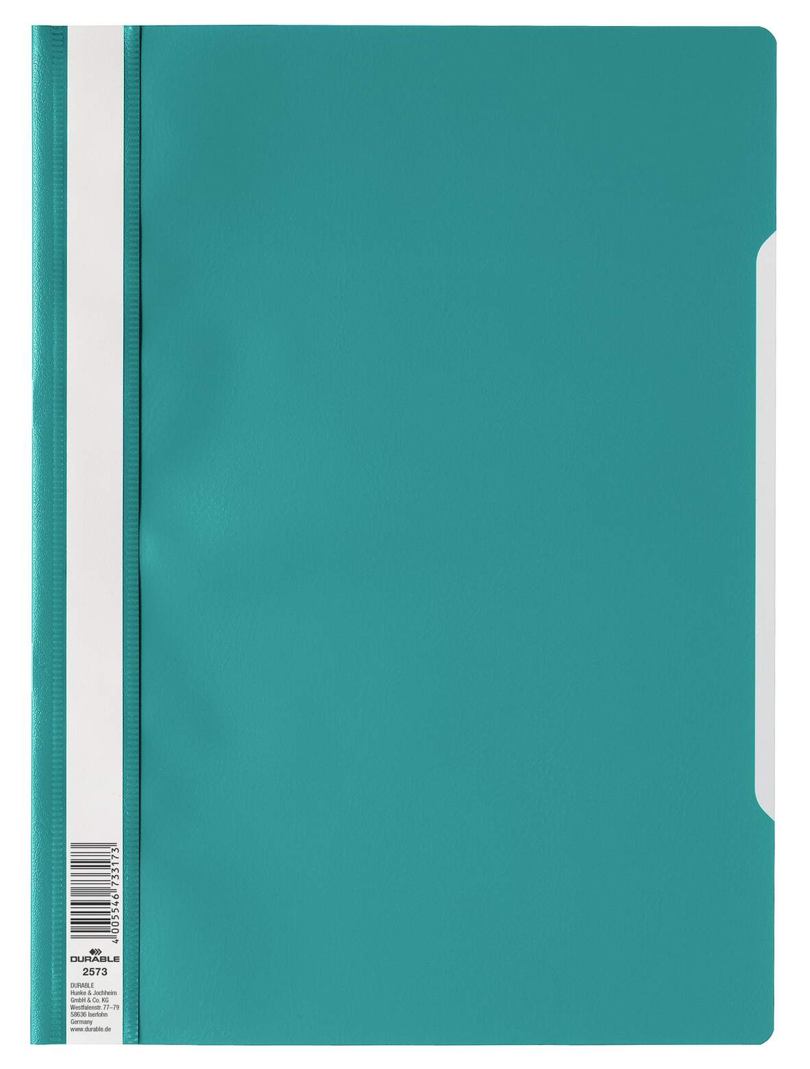 Plastový nezávěsný rychlovazač s přední transparentní stranou. Papírový proužek pro označení.
