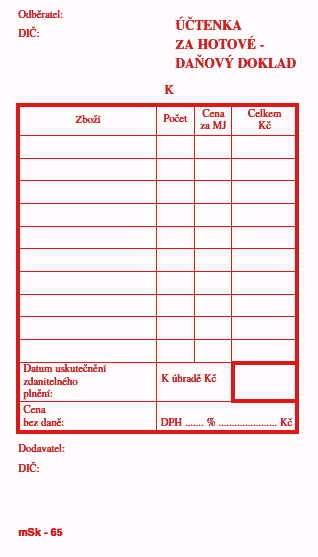 účtenka za hotové nečíslovaná samopropisovací mSk